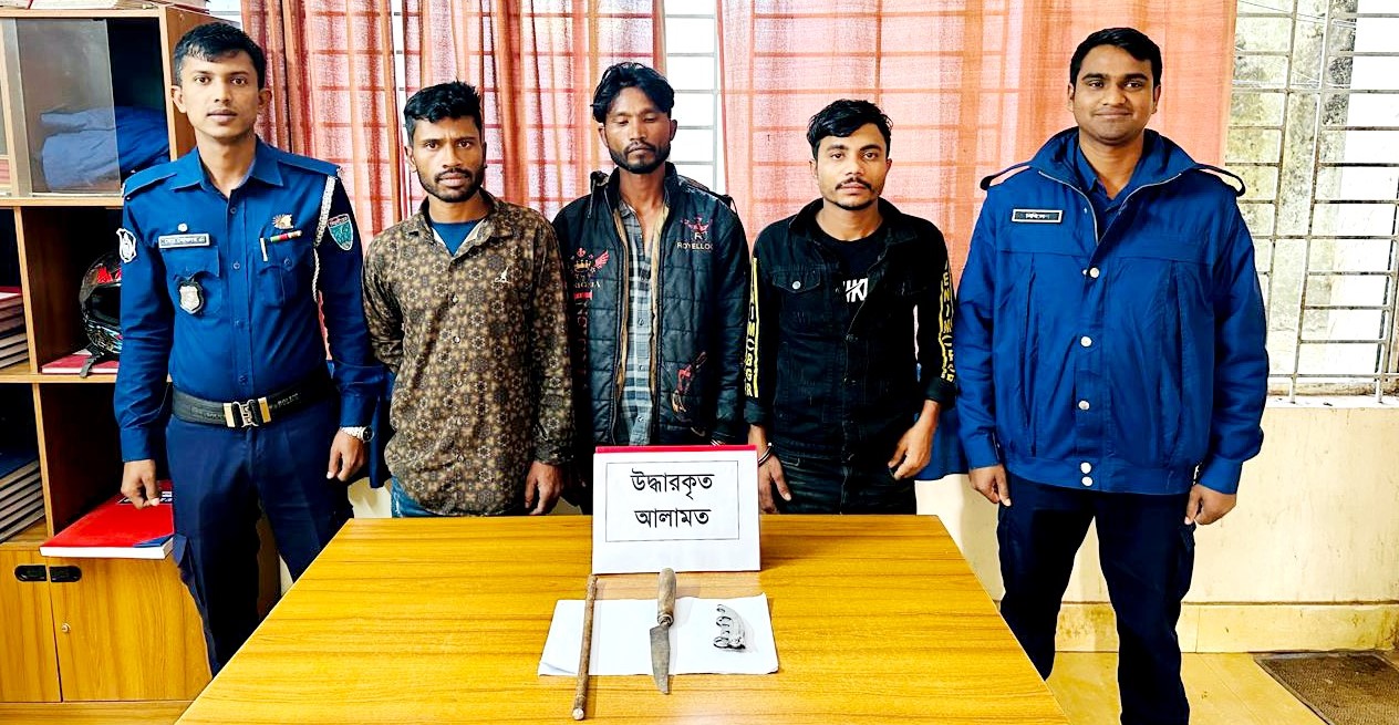 জানা যায়, মাধবপুর থানাধীন ৯ নং নোয়াপাড়া ইউনিয়নের করড়া পাকা রাস্তার উপর হতে এসআই মোঃ মিজানুর রহমান সঙ্গীয় এস আই নাজমুল হাসান, এস আই মোঃ শাহানুর ইসলাম ও ফোর্সসহ গোপন সংবাদের ভিত্তিতে অভিযান পরিচালনাকালে ২টি ধারালো চাকু ও ১টি লোহার রডস সহ তাদের গ্রেপ্তার করে।