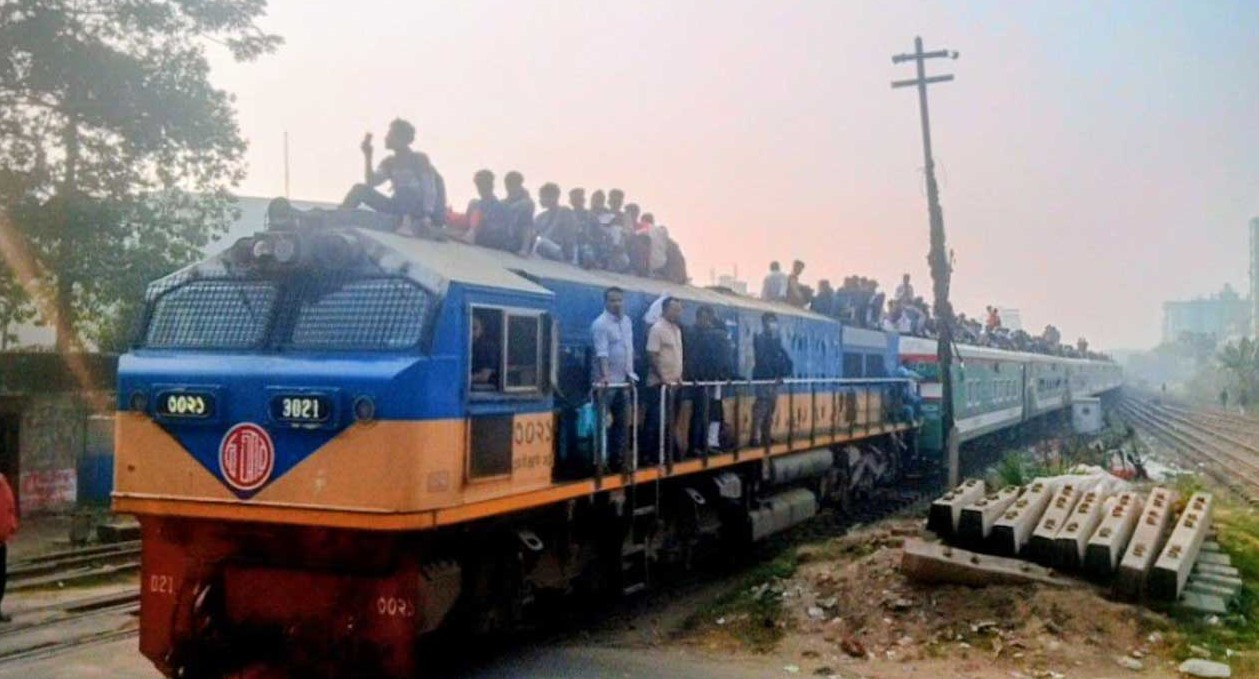 কোচের আসনের টিকিট আগেই শেষ হয়ে গেলেও যাত্রীচাপ কমেনি। অনেক ট্রেনে ভেতরে দাঁড়ানোরও জায়গা নেই। ঝুঁকি জেনেও অতিরিক্ত যাত্রীদের অনেকে ট্রেনের ছাদে উঠতে দেখা গেছে।