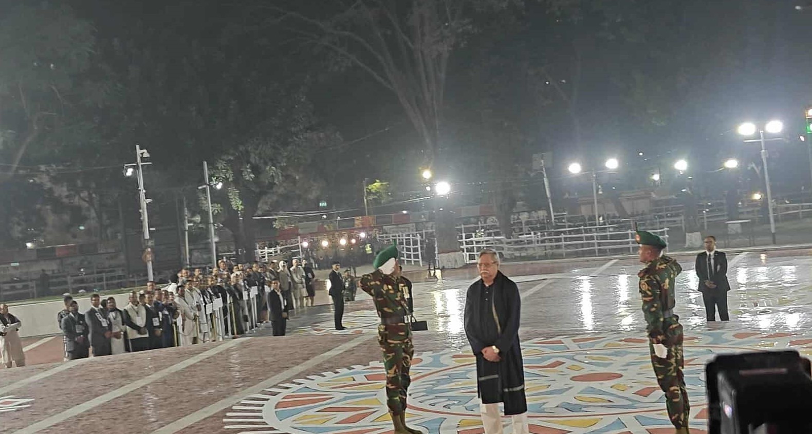 এরপর প্রধান নির্বাচন কমিশনার এএমএম নাসির উদ্দিনসহ নির্বাচন কমিশনারগণ পুষ্পস্তবক অর্পণ করেন। এরপর যথাক্রমে তিনবাহিনীর সেনা বাহিনী প্রধান জেনারেল ওয়াকার-উজ -জামান, নৌ বাহিনী প্রধান এডমিরাল মোহাম্মদ নাজমুল হাসান ও বিমান বাহিনী প্রধান এয়ার চিফ মার্শাল হাসান মাহমুদ খাঁন পুস্পস্তবক অর্পণ করেন। এছাড়া বিভিন্ন দেশের রাষ্ট্রদূত, হাইকমিশনার ও বিদেশী সংস্থার প্রধানরা শ্রদ্ধা জানান।